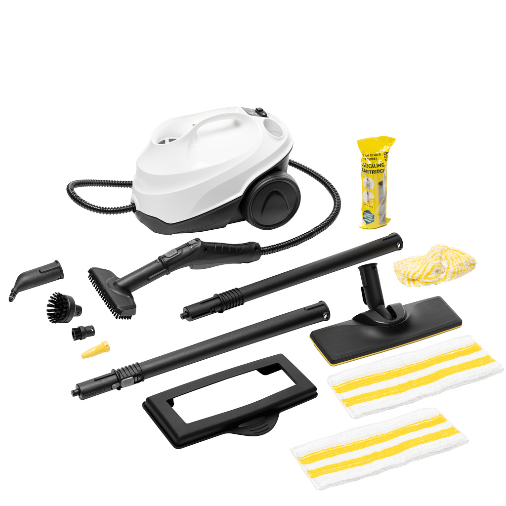 SC 3 EasyFix – самый быстродействующий пароочиститель, для разогрева которого достаточно лишь 30 секунд. При этом бачок для дозаправки водой обеспечивает продолжительную непрерывную работу. Устанавливаемый в аппарат картридж для автоматического удаления накипи продлевает срок его службы. Пароочиститель SC 3 EasyFix работает без применения чистящих средств и может использоваться для решения самых разнообразных задач уборки. Он эффективно очищает любые твердые поверхности в доме. При тщательной очистке пароочистителем Kärcher уничтожаются 99,99 % вирусов* и распространенных в быту бактерий** на твердых поверхностях. Широкий выбор принадлежностей позволяет тщательно очищать керамическую плитку, кухонные плиты, вытяжки и т. д. и даже удалять стойкие загрязнения из узких щелей и стыков. В комплектацию аппарата входит насадка для пола EasyFix с шарниром для удобной работы и пластинчатой подошвой, гарантирующей превосходные результаты чистки. Микроволоконная салфетка для пола легко закрепляется на насадке при помощи липучки и быстро снимается без контакта с грязью. 2-ступенчатый регулятор подачи пара позволяет адаптировать аппарат к различным видам загрязнений и очищаемых поверхностей. Другими особенностями аппарата являются держатели для принадлежностей и возможность закрепить насадку для пола вместе с удлинительными трубками и шлангом на время перерыва в работе. Страна производства Германия